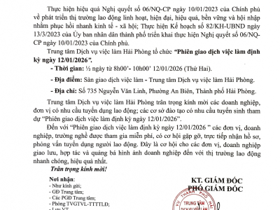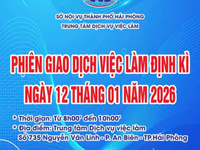 Sáng ngày 12/01/2026, tại Trung tâm Dịch vụ việc làm Hải Phòng, Sở Nội vụ thành phố Hải Phòng đã chỉ đạo Trung tâm tổ chức Phiên giao dịch việc làm định kỳ với sự tham gia của 10 doanh nghiệp đang có