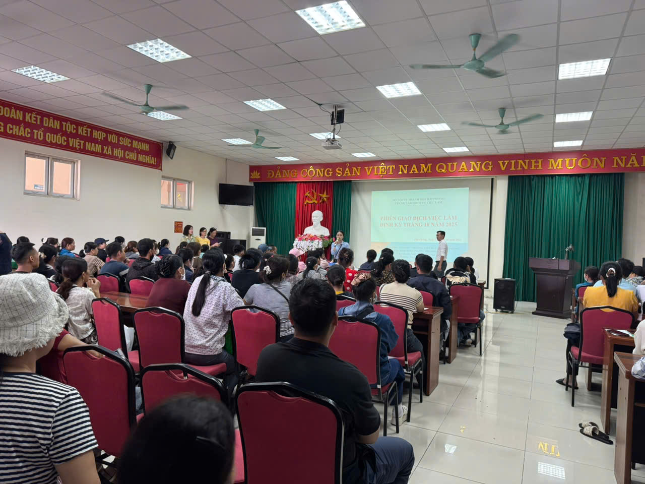 Ngày 20/10/2025. Trung tâm tổ chức Phiên giao dịch việc làm định kỳ tháng 10 năm 2025 thu hút sự tham gia của 03 doanh nghiệp. Trong đó tổng nhu cầu tuyển dụng là 800 vị trí, gồm các ngành nghề: may mặc, điện, điện tử, điện công nghiệp. Các vị trí tuyển dụng đa dạng cùng quyền lợi, tiền lương và chế độ phúc lợi thỏa đáng tạo điều kiện thuận lợi cho người lao động bị mất việc làm, chưa có việc làm tìm kiếm việc làm phù hợp sớm quay trở lại thị trường lao động.