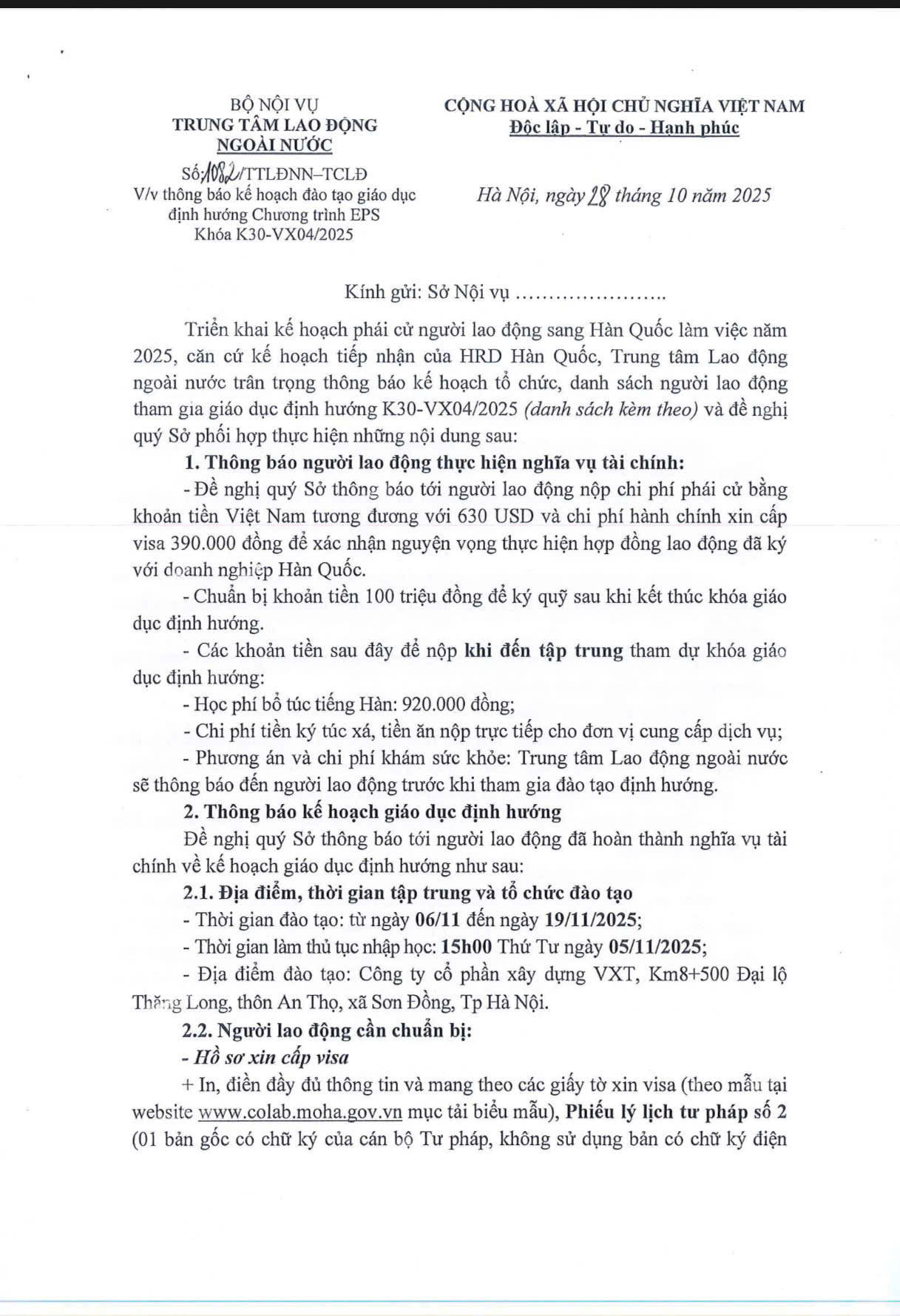 THÔNG BÁO KẾ HOẠCH ĐÀO TẠO GIÁO DỤC ĐỊNH HƯỚNG CHƯƠNG TRÌNH EPS KHÓA K30-VX04/2025