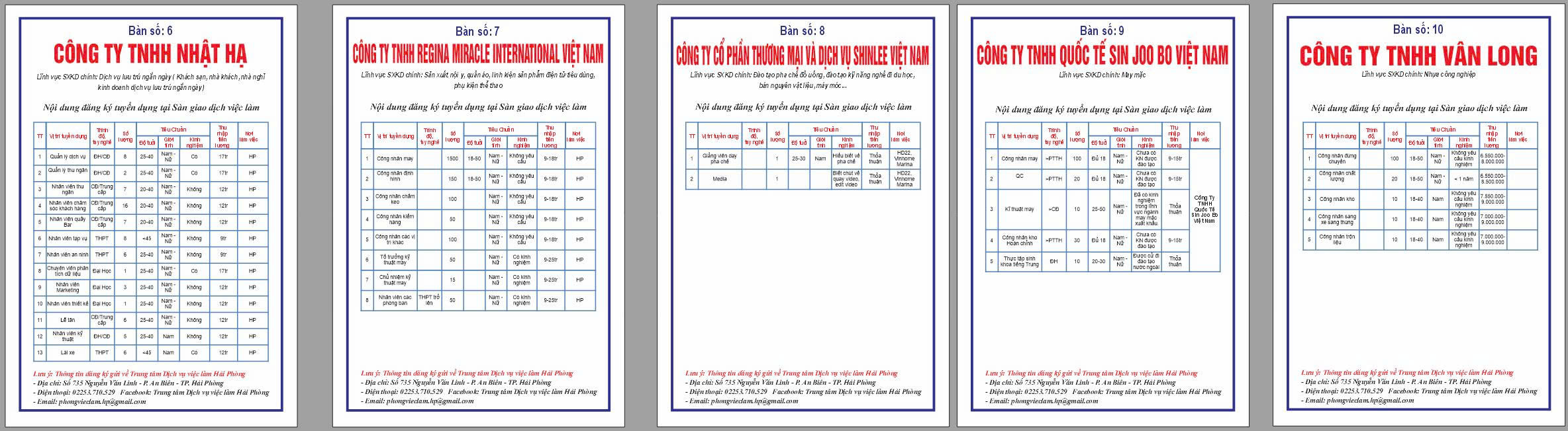 Dưới đây là chi tiết nhu cầu tuyển dụng của các doanh nghiệp tham gia Phiên giao dịch việc làm định kỳ tại Trung tâm ngày 12/01/2026: